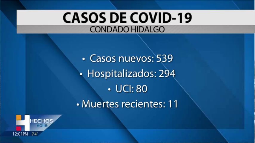 El Condado Hidalgo reportó el martes 18 muertes relacionadas con el coronavirus y 539 casos positivos de COVID-19, según un informe del Departamento de Salud y Servicios Humanos del Condado Hidalgo.