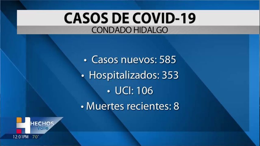 El condado Hidalgo reportó el jueves ocho muertes relacionadas con el coronavirus y 585 casos positivos de COVID-19, según un informe del Departamento de Salud y Servicios Humanos del Condado Hidalgo.