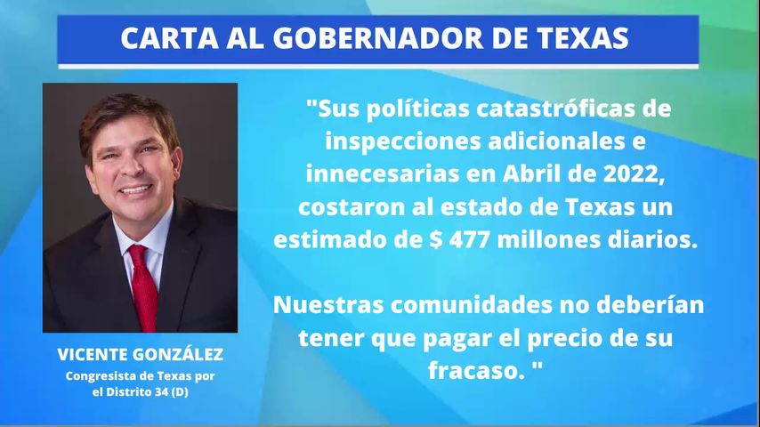El congresista de Texas por el distrito 34 envió una carta al Gobernador Greg Abbott, exigiendo una explicación con respecto al nuevo régimen de inspección de vehículos comerciales por parte del departamento de seguridad pública de Texas en ambos cruces fronterizos localizados en su distrito.