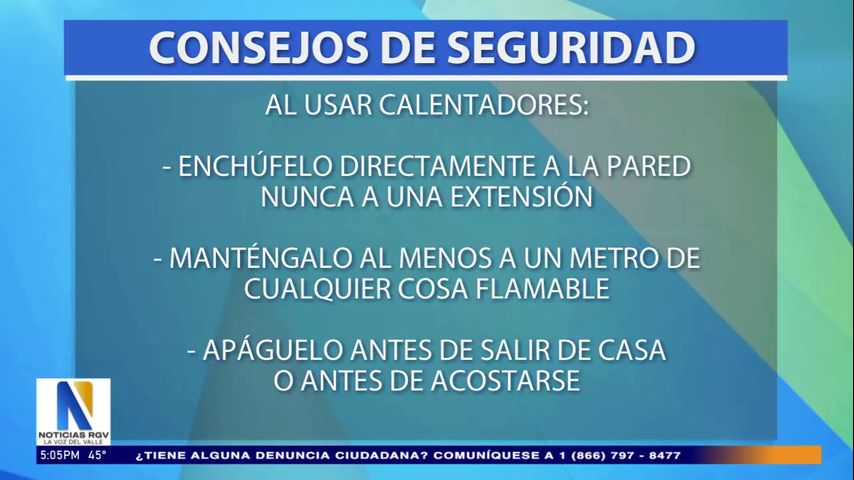 "Que no estás usando alrededor de cosas que puede agarrar el fuego, tres pies es la distancia que puede estar en las paredes, en las camas", agrega Manuel Muñiz, jefe de bomberos de la ciudad de Río Grande.