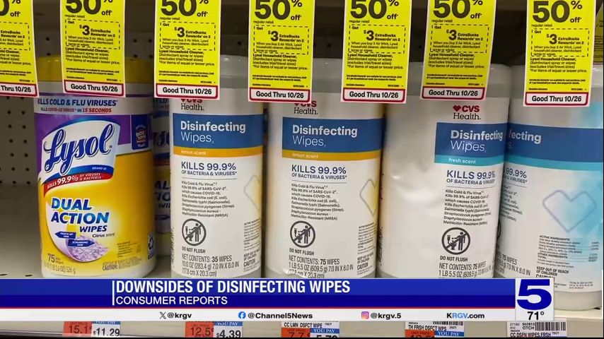 Speaking of kids, if your kids’ school uses disinfecting wipes, Consumer Reports says you may want to ask if the wipes will be stored out of reach of kids and that no kids will be using them. If your child has a respiratory condition, such as asthma, your doctor can write a letter requesting wipes not be used around your child.