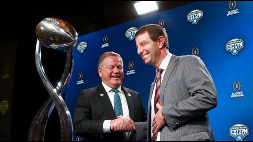 The second-ranked Tigers (13-0) face the third-ranked Fighting Irish (12-0) on Saturday in Notre Dame's first College Football Playoff appearance. It is Clemson's fourth straight. The winner will play for the national championship on Jan. 7 in Santa Clara, California. Clemson has played for the title twice in the past three seasons.
