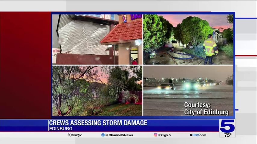 The city of Edinburg said crews are responding to reports of storm-related damages, including a roof that was blown off from a business.