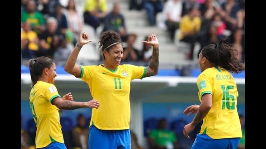 GRENOBLE, France (AP) - Cristiane scored all three goals and Brazil spoiled Jamaica's first-ever Women's World Cup match with a 3-0 victory on Sunday.