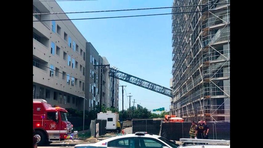 The crane fell around 2 p.m. as storms ripped across parts of Oklahoma and Texas, bringing high winds, heavy rain and hail that flooded streets and caused power outages. Wind gusts up to 71 mph (114 kph) were measured at Dallas Love Field airport, said National Weather Service meteorologist Patricia Sanchez.