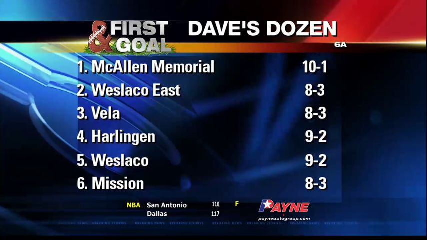 WESLACO - It's time to unveil our final high school football rankings for the 2019 season. Which teams made the list? Here's CHANNEL 5's Dave Brown with Dave's Dozen.