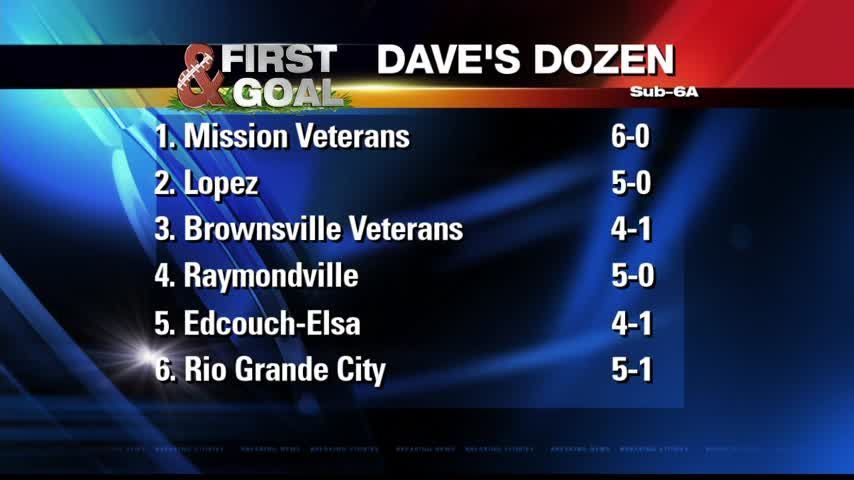 WESLACO - Two new teams have climbed their way into this week's ranking of top teams in Dave's Dozen. Plus, CHANNEL 5's Dave Brown explains why even though there are six unbeaten teams through six weeks of the 2017 season, at least one will fall by the wayside before the playoffs begin.