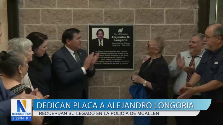 Alejandro Longoría dedicó casi 30 años a la fuerza policial, y fue celebrado con una placa en McAllen. Su viuda y un exoficial hablaron durante una ceremonia sobre el trabajo que hizo su el ex-jefe Longoria.