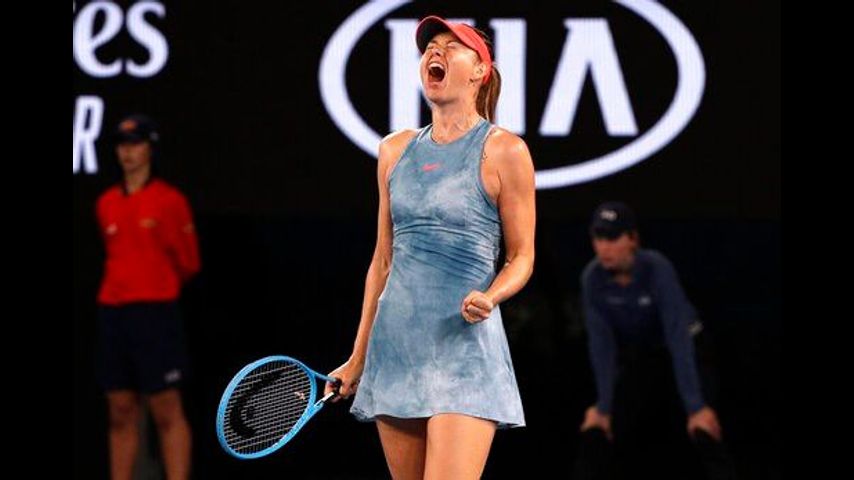 MELBOURNE, Australia (AP) - Maria Sharapova smacked a forehand winner - the sort she's hit so many times, at so many key moments, over the years - to take control against defending champion Caroline Wozniacki at the Australian Open. Sharapova balled up her fists, shut her eyes, threw back her head and let out a yell.