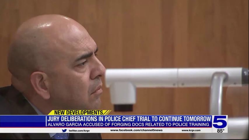 The jury deliberated for two hours Wednesday before being sent home for the day on the case against the Palm Valley police chief accused of forging documents.