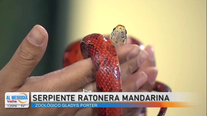 Alejandra Rodríguez nos visita desde el zoológico, Gladys Porter Zoo, para presentarnos a Cornelius, una serpiente de maíz o conocida como ratonera rojo.