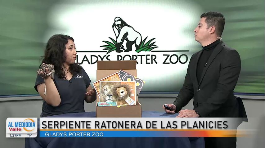 Alejandra Rodríguez, coordinadora de marketing de 'Gladys Porter Zoo' visita Noticias RGV para presentar a la serpiente ratonera de las planicies.