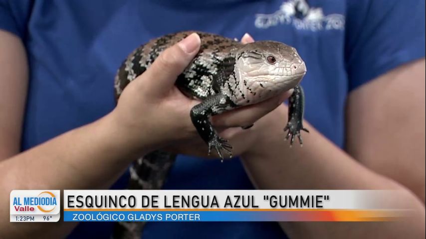 Alejandra Rodríguez, coordinadora de marketing de Gladys Porter Zoo, visita las instalaciones de Noticias RGV para presentarnos al esquinco de lengua azul, una especie de lagarto de la familia Scincidae que habita en las sabanas y regiones semidesérticas del este de Australia.