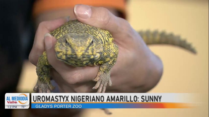 Cynthia Garza-Galván nos visita desde el zoológico, Gladys Porter Zoo, para presentarnos a Sunny, un uromastico amarillo de Nigeria.
