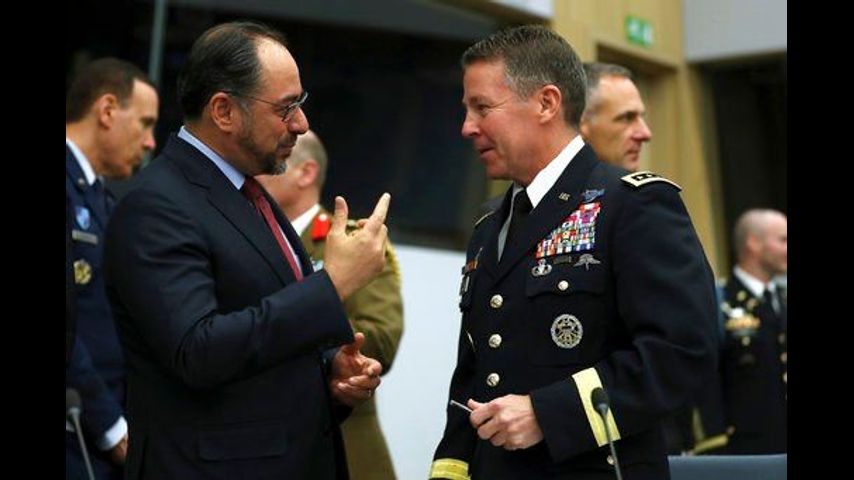 BRUSSELS (AP) - Fifteen years after NATO took the lead on international security efforts in Afghanistan, the military alliance's foreign ministers on Wednesday reaffirmed their commitment to stay the course despite mounting Afghan casualties and the slow pace of peace efforts.