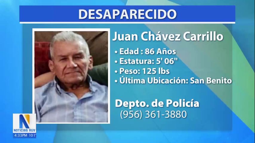 Si lo ve o sabe dónde puede estar, comuníquese al departamento de policía de San Benito al (956) 361-3880.