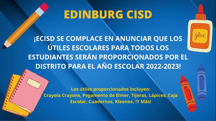 El distrito escolar de Edinburg informaron que los útiles escolares para todos los estudiantes serán proveídos por el mismo distrito.