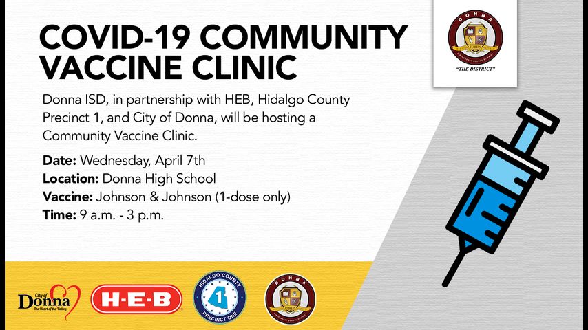 The Donna Independent School District, in collaboration with HEB, Hidalgo County Precinct 1 and the city of Donna, will host a COVID-19 community vaccine clinic this week.