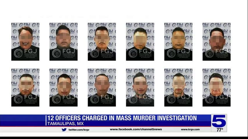 Tamaulipas state Attorney General Irving Barrios Mojica said all 12 officers were in custody and face charges of homicide, abuse of authority and making false statements.