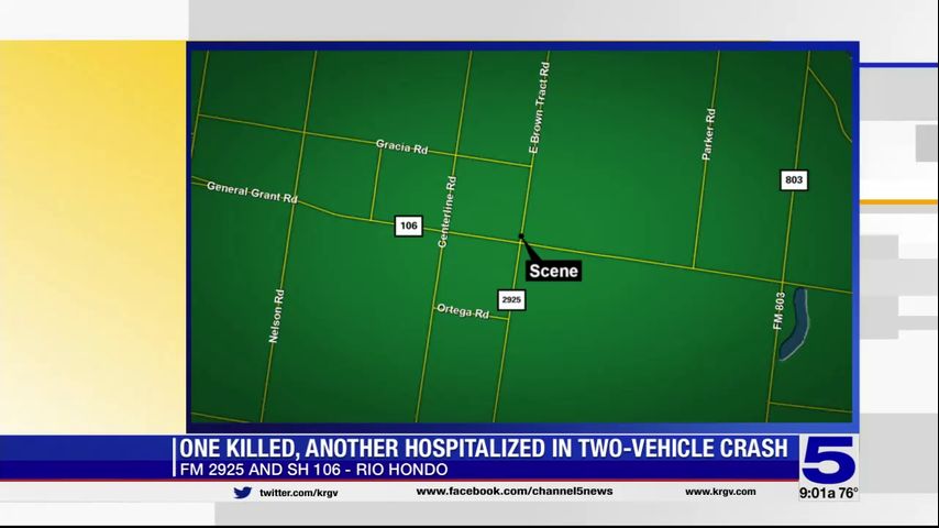 Troopers say the crash happened at about 11:17 p.m. on FM 2925 and SH 106 in Rio Hondo.