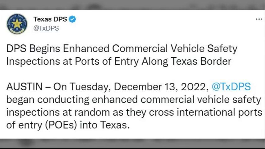 The Texas Department of Public Safety announced troopers will conduct “enhanced” cargo inspections at international ports of entry.
