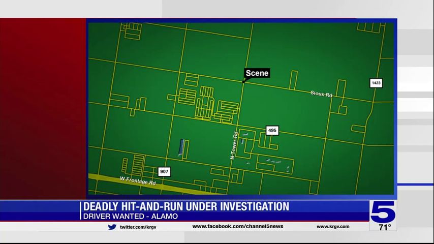 The make or model of the vehicle involved in the hit-and-run is unknown. Investigators are urging anyone with any information to call 956-565-7600.
