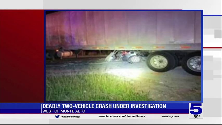 The crash occurred west of Monte Alto at around 12:06 a.m. when the tractor-truck was backing into a private drive off of FM 2812 west of Monte Alto when a 2020 Nissan Rogue collided into it, according to a news release.