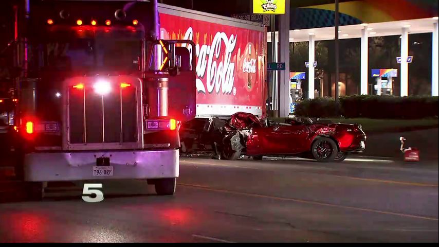The driver of the red vehicle sustained non-life threatening injuries, according to authorities. The car somehow ended up lodged under the tractor trailer.