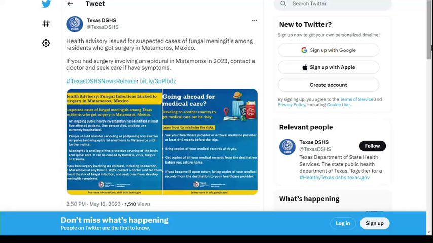 “All five patients traveled from Texas to Matamoros to get surgical procedures that involved an epidural,” a news release stated. “Health authorities in the United States and Mexico are investigating the source of the infections, whether the cases are linked, and whether there are more cases.”