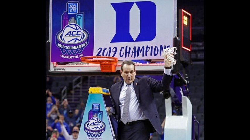 Duke claimed 58 of 64 first-place votes, while Virginia claimed five and No. 4 Gonzaga got the other vote. That gave Hall of Fame coach Mike Krzyzewski his eighth No. 1 ranking in the final AP poll, breaking a tie with late UCLA coach John Wooden for the most all-time.