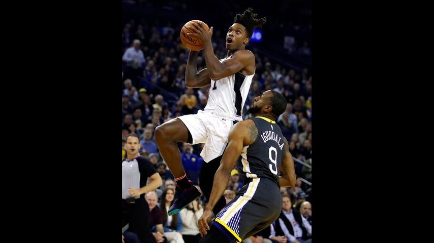 Spurs: The Spurs were outscored 50-8 in fast-break points. ... San Antonio is 6-14 on the road vs. the Western Conference. ... The Spurs' last win at Oracle Arena was a 129-100 victory Oct. 25, 2016. ... G Derrick White missed his second straight game with a sore right heel. Davis Bertans again started in place of White.
