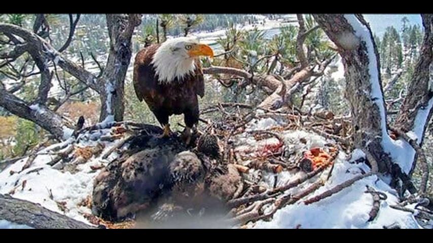 BIG BEAR LAKE, Calif. (AP) - Late season rain and snow were apparently too much for a bald eagle chick in a Southern California forest nest watched by a popular internet camera .