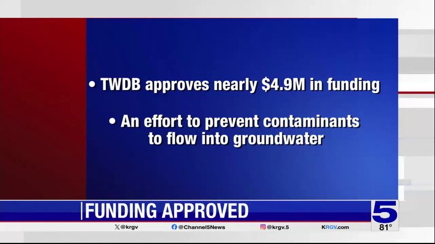 The Texas Water Development Board approved providing over $4.8 million to the East Rio Hondo Water Supply Corporation in Cameron County, according to a news release.