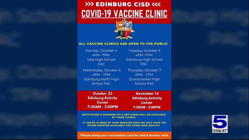 Edinburg CISD will hold several vaccine clinics this week — and they're open to the public.
