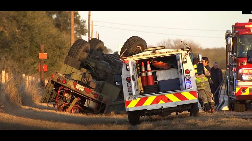 The firefighter was the only occupant in a brush truck that was heading back to the station after responding to a fire in Hargill when it rolled over near FM 490 and Expressway 281 Friday evening.