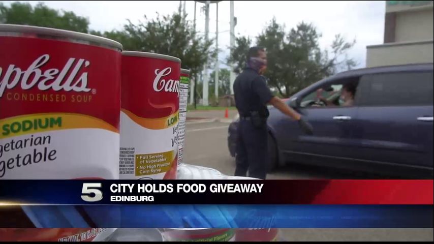 The food giveaway started at 10 a.m. and continued Wednesday afternoon. It's available to Edinburg residents, who should bring an ID or utility bill to prove residency.