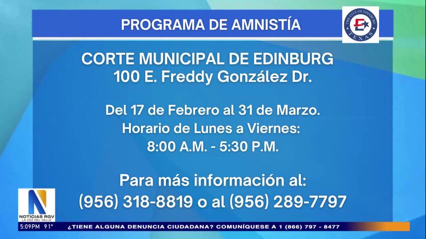 Un nuevo programa de amnistía les permitirá a residentes de Edinburg saldar deudas, multas o pagos pendientes. Este se aplica a delitos menores de clase C, como infracciones de tráfico u órdenes de arresto pendientes.