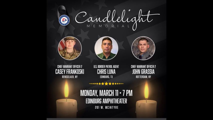 La ciudad de Edinburg será el anfitrión de una vigilia con velas la noche del lunes para honrar a las tres víctimas del accidente de helicóptero mortal ocurrido en La Grulla.