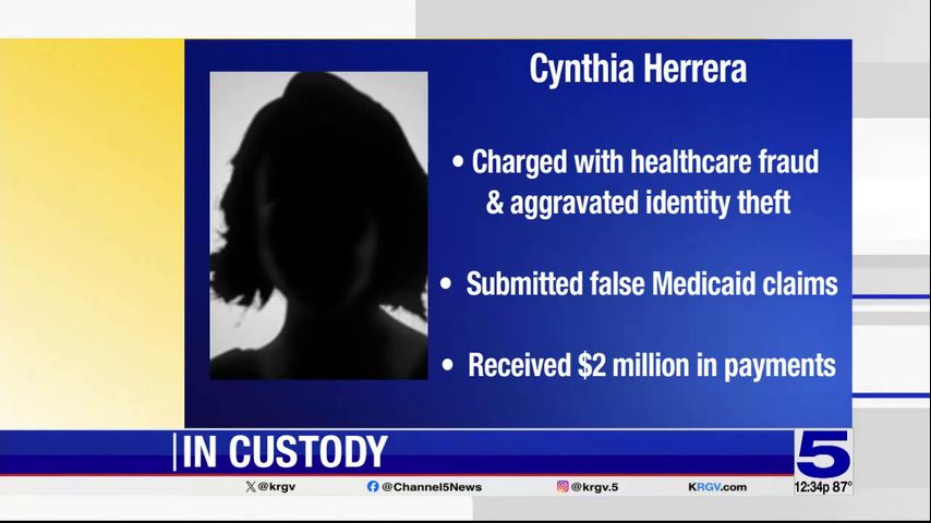 An Edinburg woman was taken into custody on charges of healthcare fraud and aggravated identity theft in connection with a scheme to defraud the Texas Medicaid Program, according to a news release from the office of U.S. Attorney Nicholas J. Ganjei.