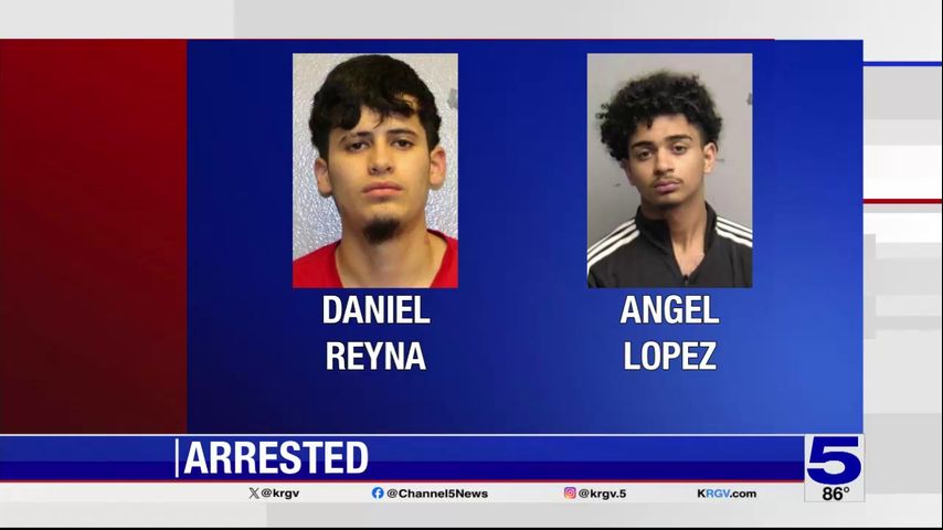 Daniel Reyna, 18, and Angel Lopez, 17, were arrested on charges of burglary of a vehicle and theft of a firearm.