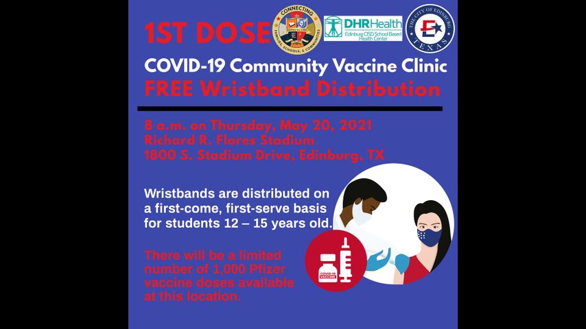 Edinburg will hold a vaccine clinic for kids ages 12 through 15 on Friday, May 21.