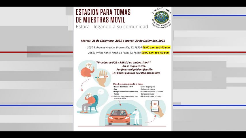 El condado de Cameron está ofreciendo pruebas de COVID-19 en Brownsville y La Feria de martes a jueves.