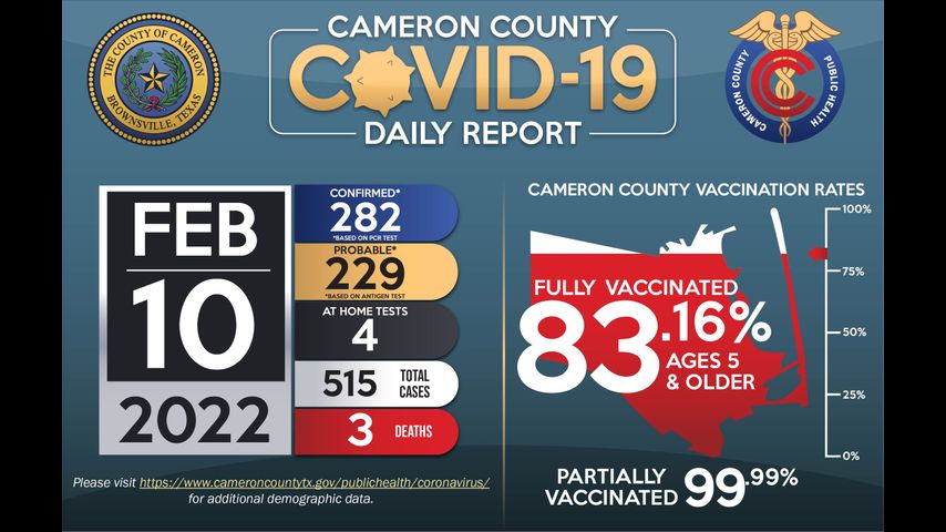 Los esfuerzos de vacunación continúan en todo el condado de Cameron; actualmente, el 83.16% de la población de cinco años y más está completamente vacunada.