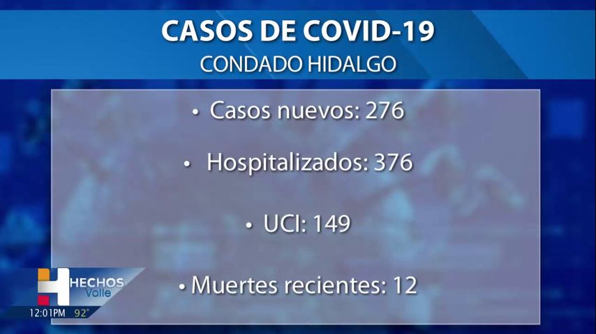 El condado Hidalgo informó este martes de 12 muertes relacionadas con el coronavirus y 276 casos positivos de COVID-19.