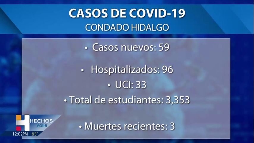 El condado Hidalgo informó el martes sobre tres muertes relacionadas con el coronavirus y 59 nuevos casos positivos de COVID-19, según un informe del Departamento de Salud y Servicios Humanos del condado Hidalgo.