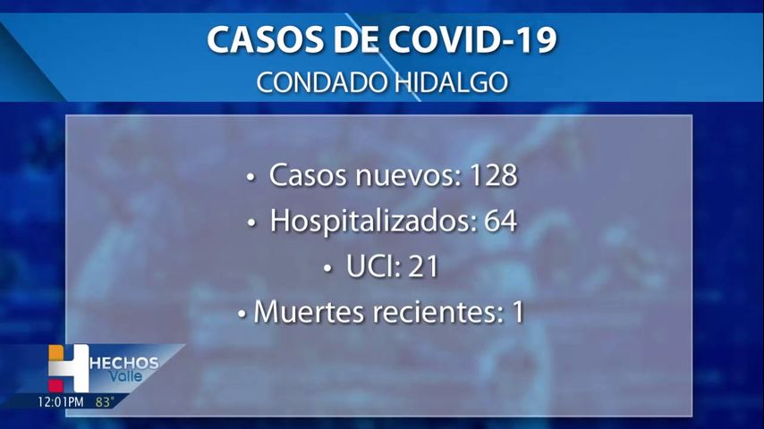 El condado Hidalgo informó el jueves una muerte relacionada con el coronavirus y 128 casos positivos de COVID-19, según un informe del Departamento de Salud y Servicios Humanos del condado Hidalgo.