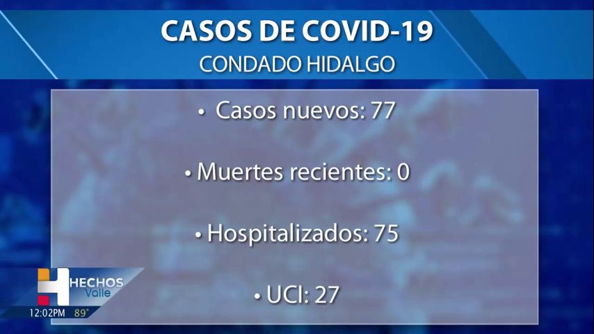El condado de Hidalgo informó el martes 77 casos positivos de COVID-19 y ninguna muerte relacionada con la enfermedad.