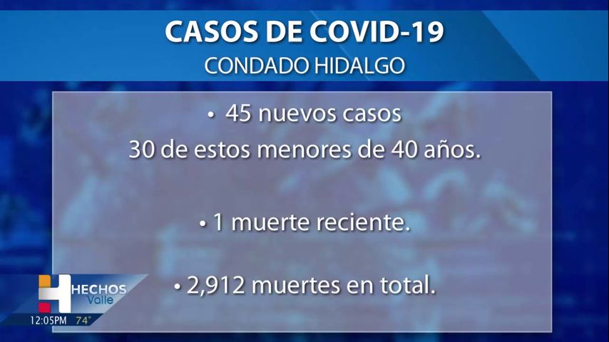 El condado Hidalgo informó el martes de una muerte relacionada con el coronavirus y 45 casos positivos de COVID-19.