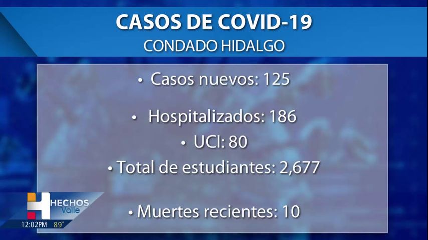 Actualmente hay 186 pacientes de COVID-19 en los hospitales del condado de Hidalgo; 162 son pacientes adultos y 24 son pacientes pediátricos.