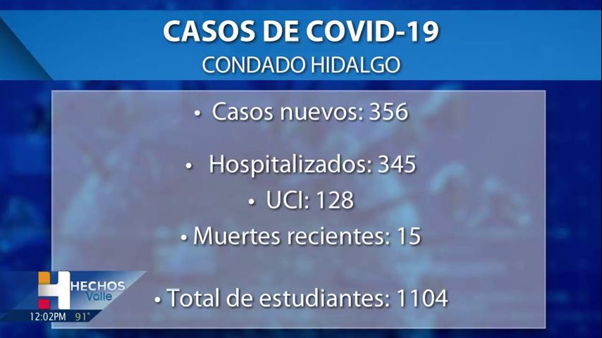En todos los distritos escolares del condado de Hidalgo, nueve miembros del personal y 52 estudiantes dieron positivo por COVID-19. El condado no especifica en qué campus se produjeron las infecciones positivas.